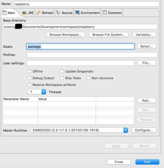 • Una vez listo el código, me creó una nueva configuración de ejecución en eclipse para el proyecto de maven y agregó un gol de "paquete".