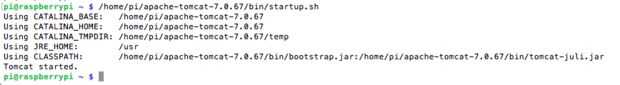 • /Home/PI/Apache-Tomcat-7.0.67/bin/startup.sh