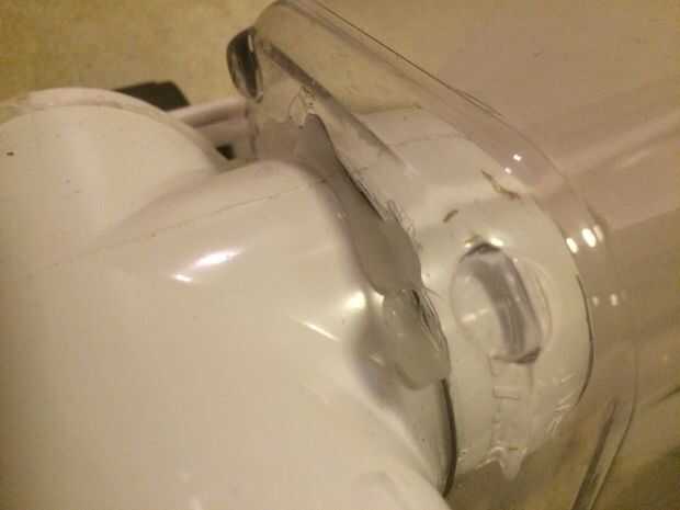 Para el dispensador de comida, quería algo que era robusto y puede ser sellado para conservar la frescura de los alimentos tanto como sea posible. Tenía un recipiente repuesto de cama, baño y más allá de todo así que decidí usar eso. Tiene lados gruesos y era transparente, así que puedo mantener un ojo en el nivel de alimento.