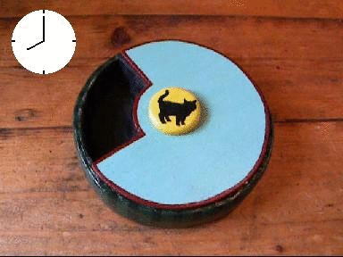 Editar #2: Comedero gato hice parece estancarse a veces, esto es porque el disco es demasiado pesado para el motor. No quieres parar de repente cuando te has ido, así que el disco lo más ligero posible! He realizado un nuevo disco de una fina lámina de plástico, que funciona mejor. También puede buscar un motor de reloj más fuerte, como ésta.