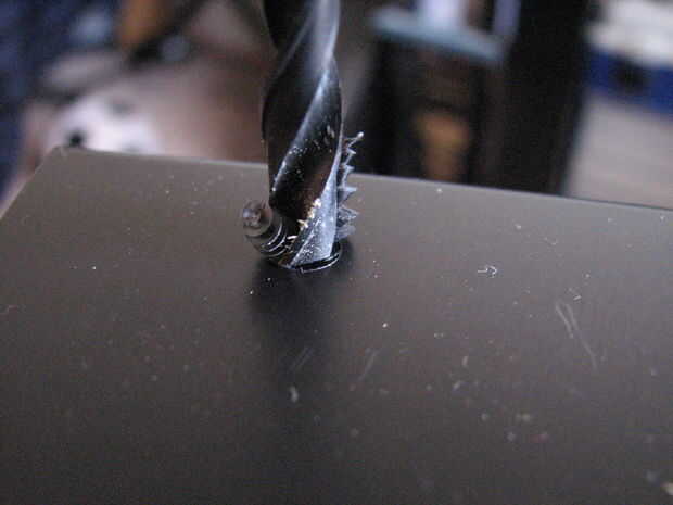 A continuación querrás taladrar agujeros para permitir el montaje de los cables eléctricos. Te montamos estos mediante postes de aluminio roscado... esta manera, las modificaciones exteriores a la campana no sensibles. Mientras que quiero que esto sea un gran mod en el extremo, todavía quiero que caben en la sala de estar como siempre. Que se vea profesional.