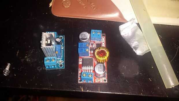 Pasé tres convertidores de paso descendente. Dos LM317 al poder el Arduino y la bomba. Tienen amp máximo 1.5A. Primero trató de LM317 para manejar el LED también, pero tuvo problemas con el ir de regulador de tensión en caliente. El LED utiliza un otro convertidor DC a DC, que puede dar hasta 5A.