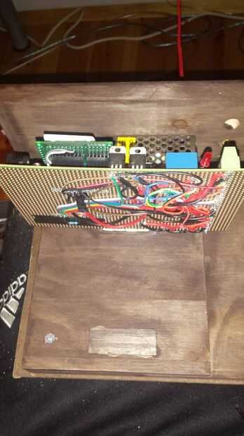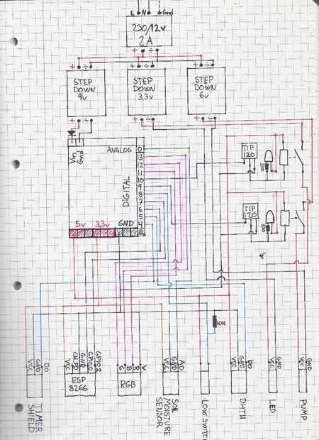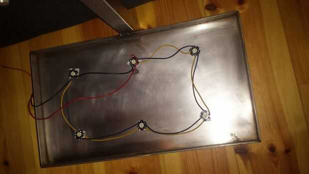 Para cablear los LEDs tomé el alambre de acero cuadrado y hasta la placa. He utilizado seis pcs 1w LED. Realmente no creo que tiene gran importancia para las plantas pero el pensamiento parecía agradable con la luz hacia abajo sobre las plantas. LED es controlados por una salida de Arduino a través de un TIP120 y un relé. El poder viene del convertidor DC a DC. La salida de Arduino está codificada para que el LED activa la salida desde el programador '' casera ''. Se más sobre el temporizador en el paso siguiente.