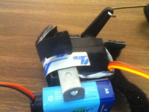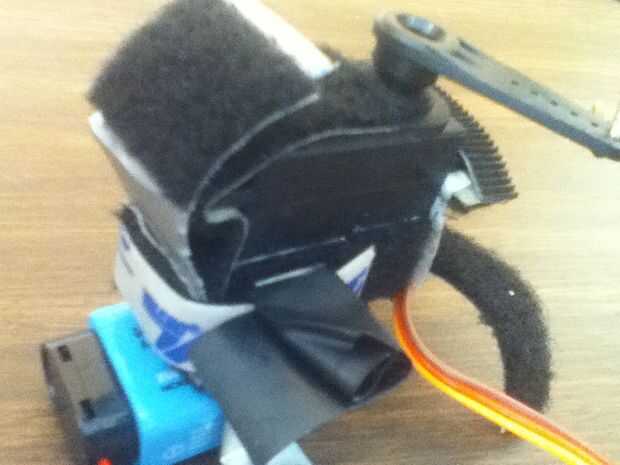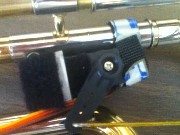 • correa el servo para el trombone (usé Velcro (no pegar el Velcro en el trombón), el servo del cojín primero) (el servo debe ser atado muy firmemente)