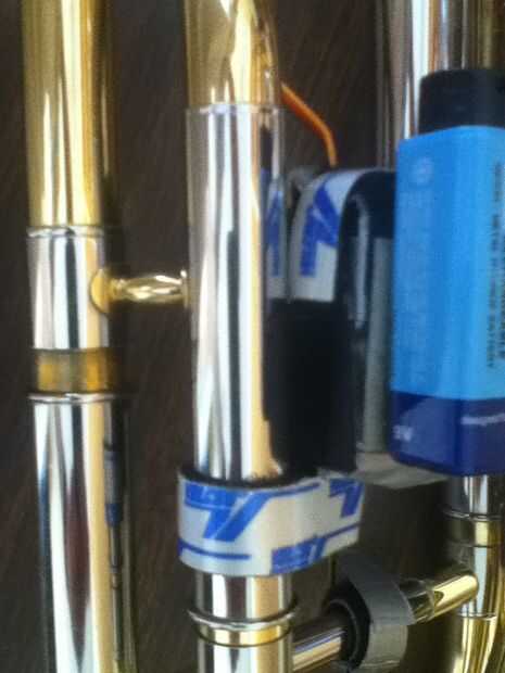 • Encontrar una posición para el servo en el trombón (un lugar donde correa en forma segura y llegar a la diapositiva de sintonización)