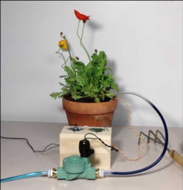 Del palillo de la sonda de humedad en el suelo y el bote de vuelta en el comparador a la mitad. Adjsut el comparador hasta el ciruict comporta de la forma que desee (es decir, la bomba se enciende cuando se supone que). La mejor manera de ajustar cuánto tiempo el agua fluye para es mover la sonda más cerca o más lejos de la fuente de agua.