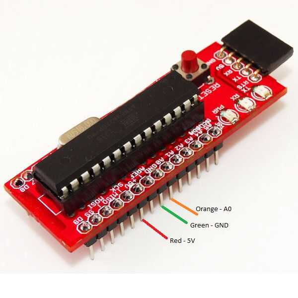 c. cable naranja - conectar la clavija (analógico) A0 en sensor de suelo al pin A0 (analógico) de arduino