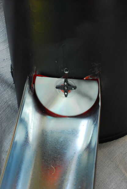 La tubería de ventilación viene en forma de "U", así que hice un corte en forma de "U" en el centro de la parte inferior del cubo. Aviso I did ' t corte la "U" todo, en su lugar he dejado un trozo de plástico en el medio para sostener el motor servo que gira el CD.