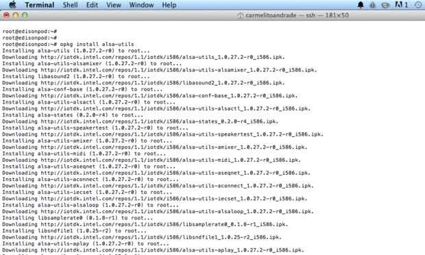 Para reproducir el sonido de su Edison necesita instalar alsa-utils, empezar de por actualizar el gestor de paquetes utilizando el comando