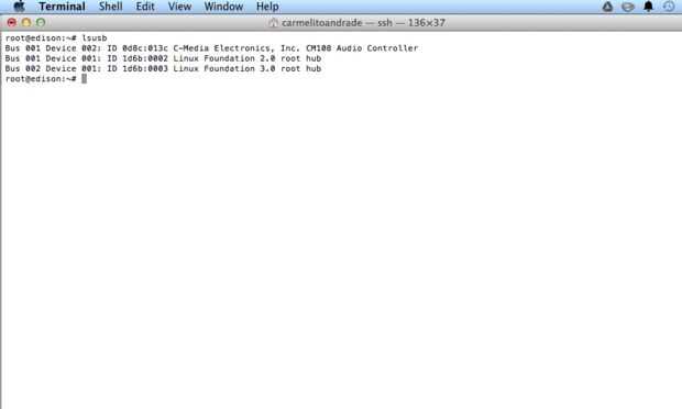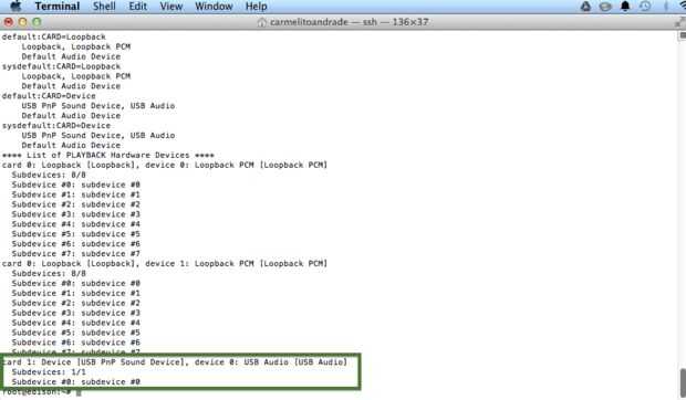 Una vez que conecte el USB sonido tarjeta y altavoz USB en placa Intel Arduino, a continuación, dar los siguientes comandos como se muestra en las capturas de pantalla de segunda y tercera anteriores