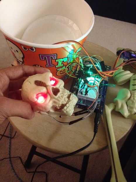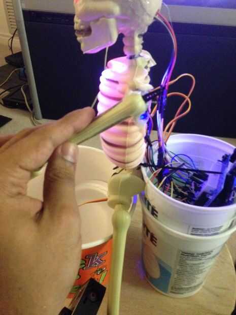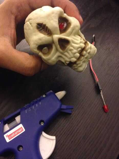Para ponerlo todos juntos comenzar de hacer los agujeros para los LEDs en el cráneo y los LEDs del pegamento estupendo después de adjuntarlos al embarque alambre del pan.