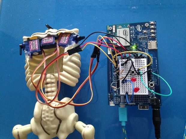 Insertar el escudo de Proto en las cabeceras de Arduino de la placa base Intel Edison y haga las siguientes conexiones