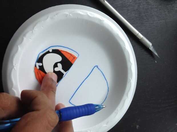 Usando un plato de papel corta pieza un poco más grande el que recorte de la cubeta de regalo.