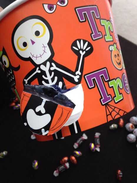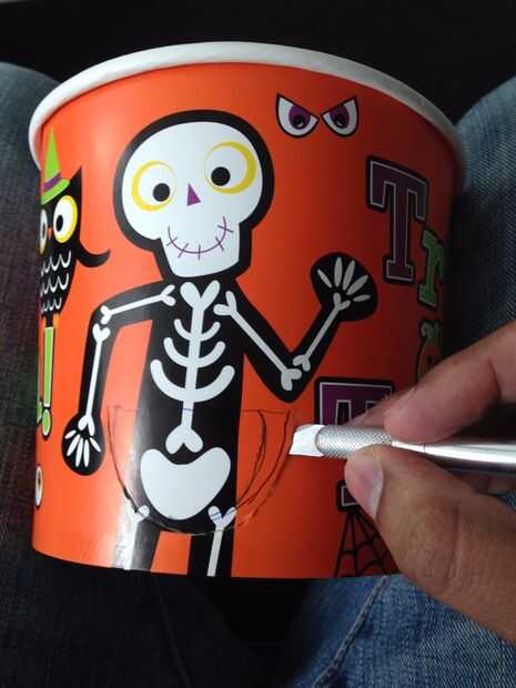 Ahora para crear el dispensador, medir trata aproximadamente y corte un orificio produce el cubo como se muestra en las fotos anteriores
