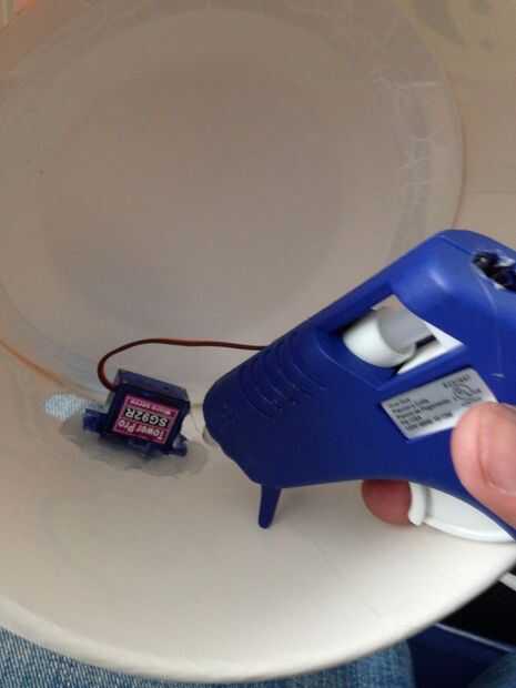 Utilice pegamento caliente para fijar el brazo del Servo.