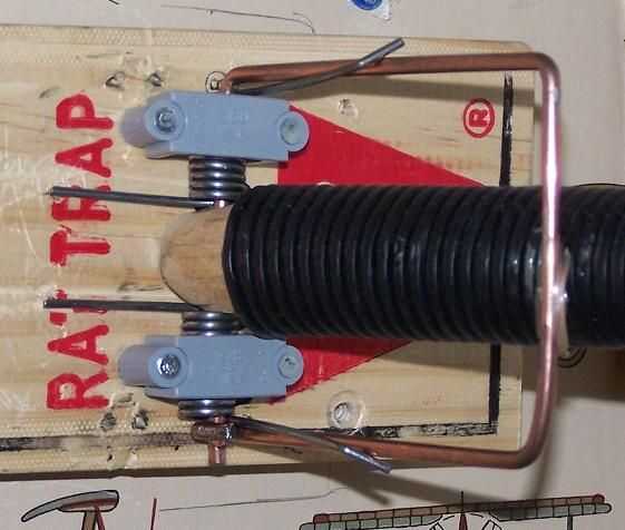 Montaje: Coloque sobre de los resortes en la barra de trampa de rata separados primero por lo que es el brazo con un gancho pequeño en la parte superior la barra del brazo (como se ve en la foto). Esta parte es un poco confusa... Coloque el brazo de la escoba en la barra de la trampa de rata, pero asegúrese de que la escoba va debajo de la parte superior de la trampa de rata, como se ve en la foto.
