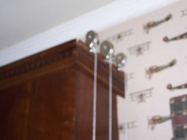 Tenía muebles cerca de mi cama, pero puesto que estaba lejos de la pared, yo solía una polea cambiar la dirección para que yo pudiera tener la ventaja mecánica de tirar hacia abajo para cerrar la puerta.