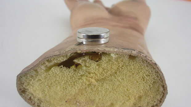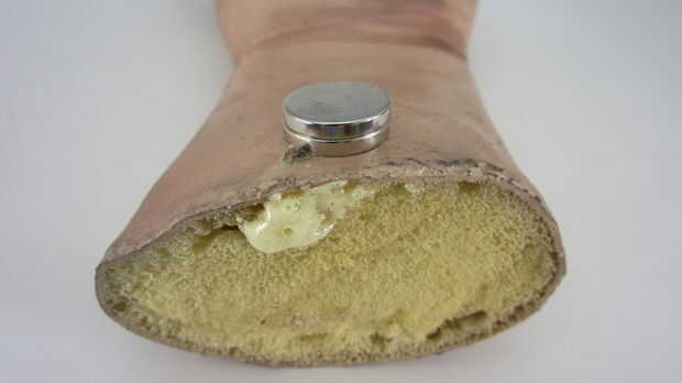 Lo primero que tienes que hacer es incrustar un imán en su proposición de Halloween. Así que empieza por decidir donde de la prop el imán debe estar ubicado. Este debe ser un lugar que naturalmente se encuentra al ras contra la mesa cuando ha establecido. Por mi parte me decidí a montar el imán en el interior de la muñeca justo al pasar el extremo cortado.