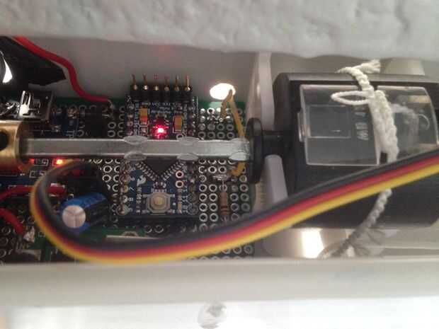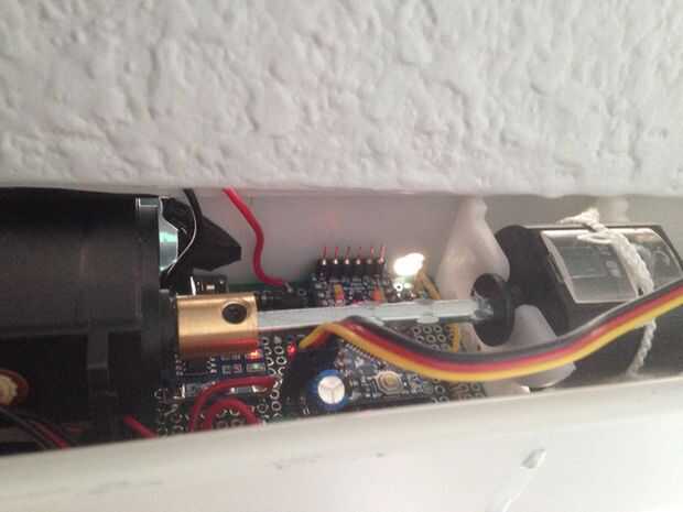 Ahora que está construido el circuito, es hora de ponerla en el riel de la persiana.