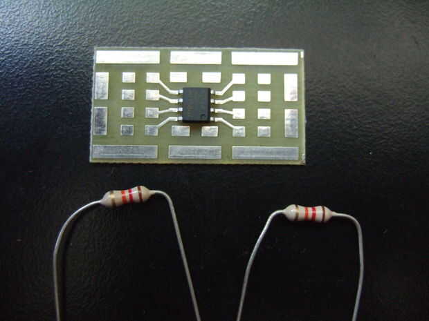 < ul >< li > R1: resistencia de ohmios de 22 k < /li >< li > R2: resistencia de ohmios de 22 k < /li >< li > Q1: FET tipo N con voltaje de bajo umbral (irf7309 o fds8958) < /li >< li > Q2: FET de tipo P con voltaje de bajo umbral (irf7309 o fds8958) < /li >< li > tabla de surf 9081 basarse (digikey parte 9081CA) < /li >< li > micrófono enchufe para conectar a videocámara < /li >< li > enchufes para conectar a la cámara y la batería de la energía (o usted podría alambre duro) < /li >< /ul >