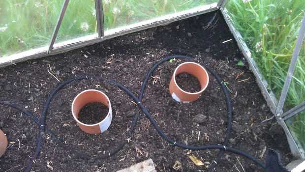 conectar una longitud de la manguera a la bomba y correr al invernadero y conecte la válvula de solenoide para el end.after esto, decidir donde desea el agua y pone a un madurador perforada la manguera, o simplemente corte/taladro algunos pequeños agujeros en un tubo ordinario.