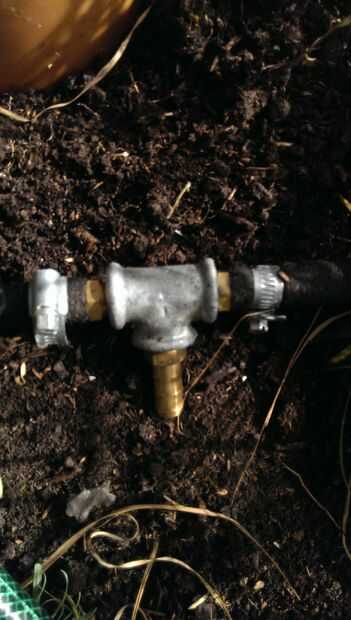 una vez hecho esto fije ambos extremos de la manguera perforada para la instalación de tuberías de una pieza en t y luego la válvula solenoide a la pieza de t. necesita una válvula de solenoide realmente para garantizar que el sistema de sifón no de la culata de agua una vez finalizado el ciclo. otra nota, mi experiencia es mejor colocar la pieza en t en alguna parte alrededor de la mitad de la cama para asegurar un flujo uniforme de agua en cada dirección.