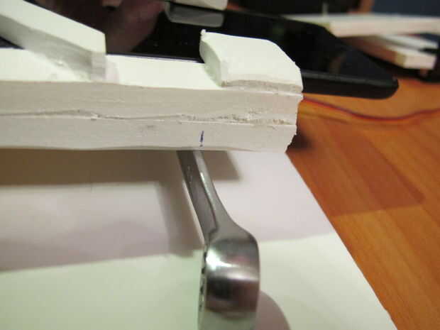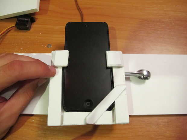 Para minimizar el estrés de servo, he equilibrado el soporte de iPod y marcado los puntos de equilibrio.