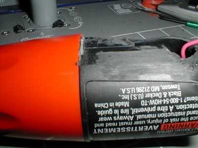Este es el extremo de alimentación del controlador. El motor es apenas visible. Tenemos que el área del corte tan plano como sea posible garantizar que el bloque de madera utilizado para montarlo.