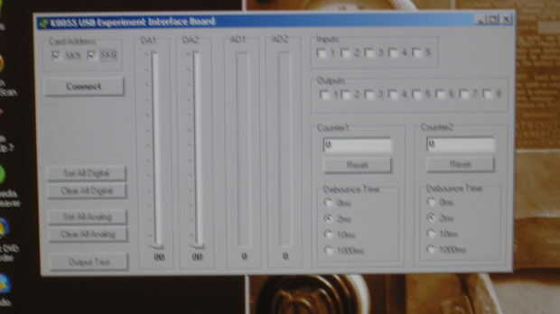 ahora tienes que conectar los cables del mando a distancia a la tarjeta USB y luego conectar la placa USB al ordenador. mi Junta vino con algún software de demo que me da cajas de señal para las salidas digitales.