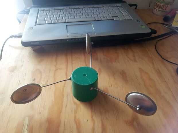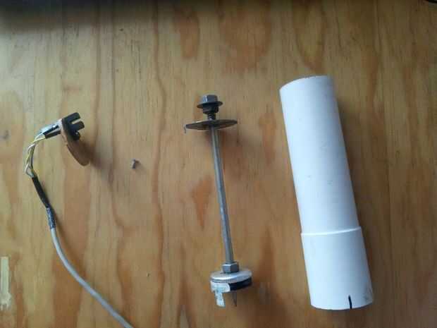 El sensor de velocidad del viento está hecho de chatarra, utilizo un 1.5" D x 6" tubo pvc de L, 1 pc 1/4" d x 6" L stel barra, 1 1,125" D tapa de la botella, 1/4" D tuercas, arandelas, metal de hoja fino, tapa de plástico de 2" D, 1.5" D x 0.125" triplay, alambre galvanizado y la parte inferior de las latas de coca-cola como las hojas. La clave para el funcionamiento de este sensor es reducir la fricción entre los componentes fijos y spining.