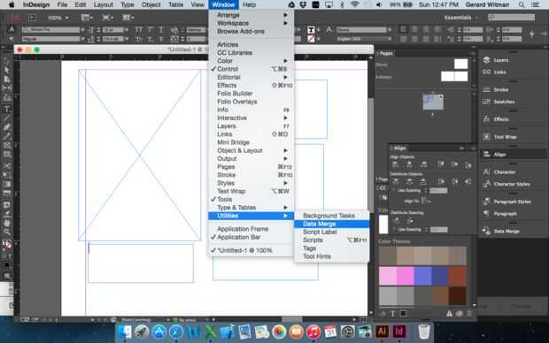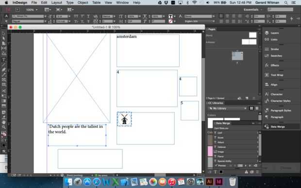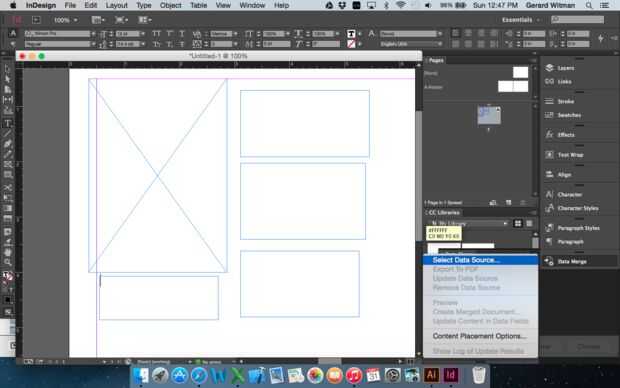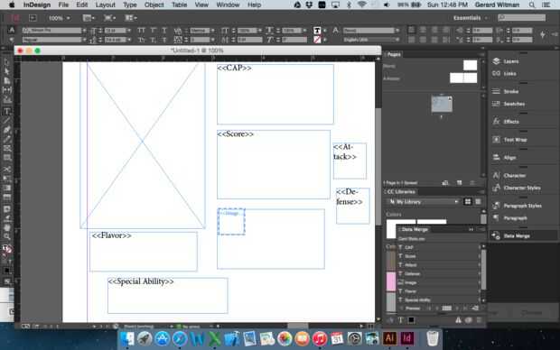 Lo primero que hago en InDesign es crear todas las cajas que necesito basadas en las columnas que he creado en el documento de Excel.