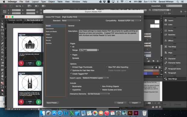 Todo es mirar gran. El diseño es exactamente lo que queríamos pero estamos viendo avisos de texto desbordado. Quiero exportar al doc en formato PDF directamente. Esto es mejor entonces tratando de ir por la tarjeta en la vista preliminar para averiguar qué tarjeta ha desbordado texto en él. La exportación genera una advertencia que te deja saber si hay alguna duda. Si tienes una página que se desborda puede simplemente activar la vista previa y goto esa página y editar la plantilla para que encaje.
