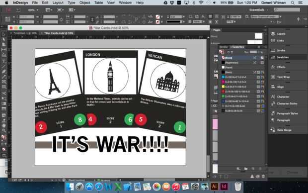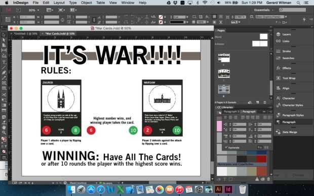 Después de las últimas páginas se han dictado y no hay ningún texto desbordado en la página que me gustaría volver atrás en el nuevo documento y crear una página de héroe para el proyecto. Aquí he creado una página de título simple y algunas reglas para la tarjeta de juego y exportaron el archivo como un PDF y JPG.