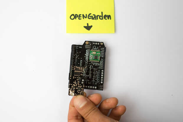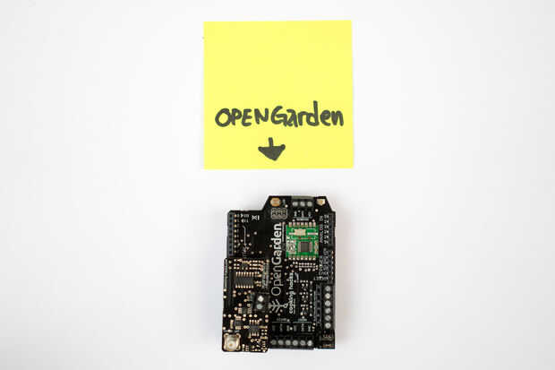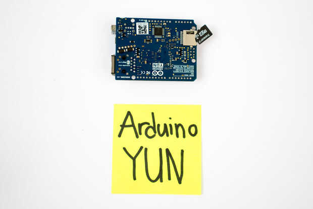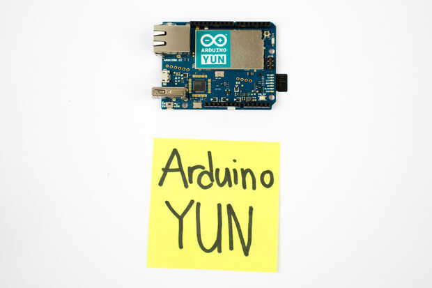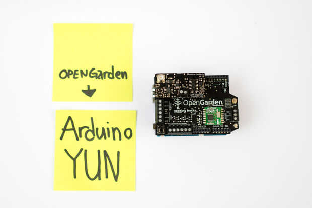 - Apilar el jardín abierto sobre el YUN Arduino con el encabezado adicional entre