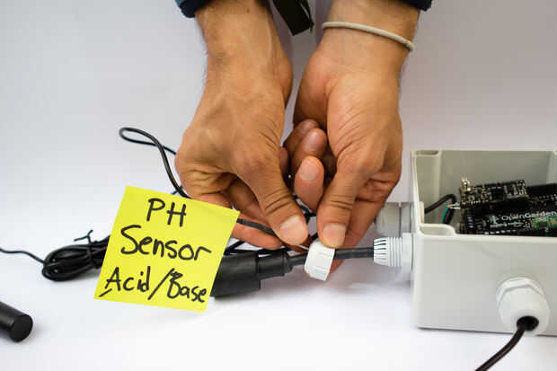 - Inserte el sensor de PH a través de la tapa del mismo.