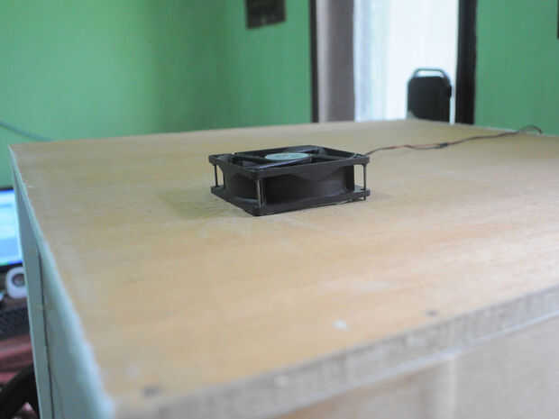 He instalado el ventilador de la PC en el techo de la caja. Este ventilador tiene dos funciones básicas. Puede trabajar como un extractor cuando estoy haciendo de soldadura, así el ventilador que aspire el humo inmediatamente. La otra función es para la refrigeración de mi caja.