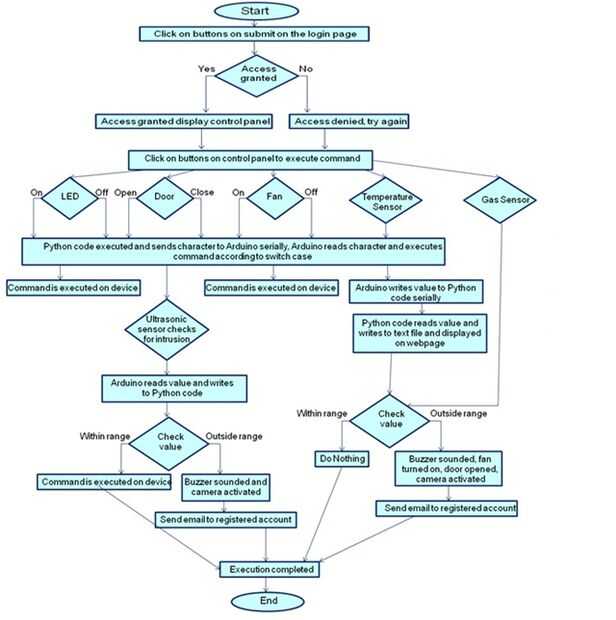 de las cosas es la tecnología del futuro que poco a poco subiendo y ganando impulso en la industria de telecomunicaciones. Aquí, hemos tratado de crear un sistema de seguridad controlado por Internet. El objetivo del proyecto fue desarrollar una aplicación/herramienta web que le dará al usuario acceso a cerraduras y otros aparatos en la casa. Las aplicaciones existentes que ofrecen soluciones similares tienen limitaciones tales como, rango, el número de dispositivos que pueden ser controlados, consumo de energía, alto costo, baja seguridad y escalabilidad. En nuestro proyecto la escalabilidad es alta ya que es dependiente de la Internet, se utilizan circuitos de potencia baja, gran cantidad de datos puede ser manejado fácilmente a través de Python codificación, privacidad y alta seguridad son posibles debido al uso de los protocolos de Internet como 'https'.