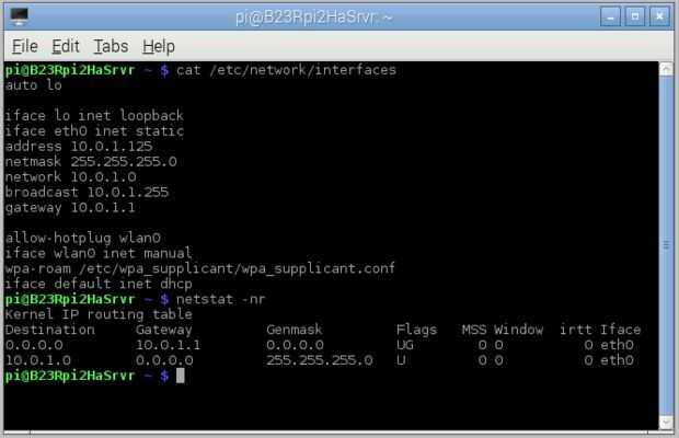 Dirección: la dirección que quiere dar su Pi, esto puede ser cualquier IP en el rango de red, pero es generalmente aconsejable ir más alto en lugar de bajar o podría terminar registro de diferentes dispositivos a la misma IP! He seleccionado 10.0.1.125, como ya estamos registrados a esa dirección (denotada por 'inet addr'), pero esto puede ser cualquier dirección IP de la gama 10.0.1.2 a 10.0.1.255.