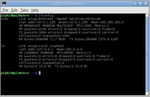 eth0 Link encap HWaddr b8:27:eb:65:52:48