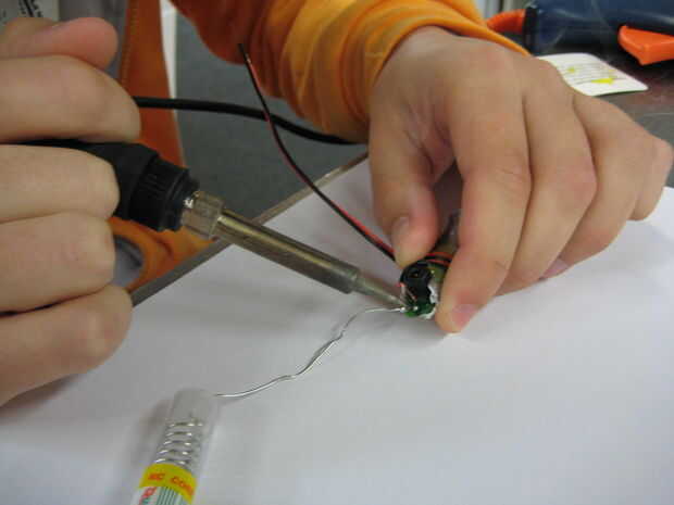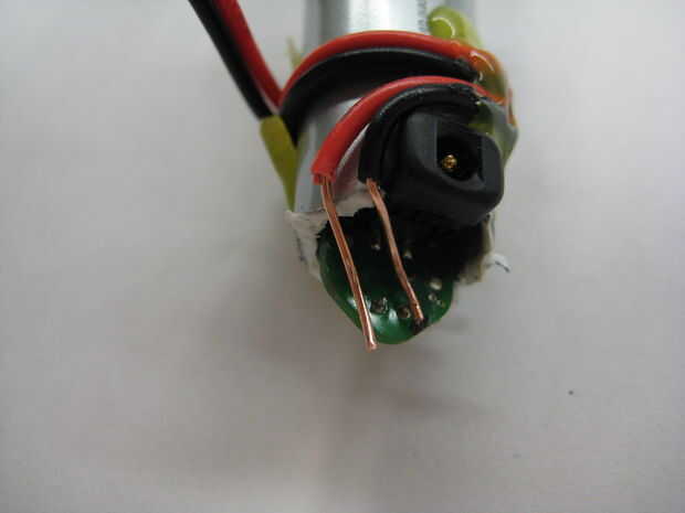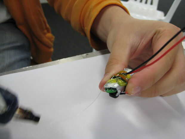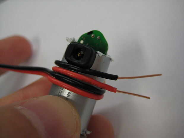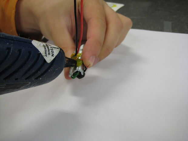 Conecte un cable rojo al terminal que el extremo positivo del micrófono fue unido a y un cable negro al terminal que al final negativo fue unido a.