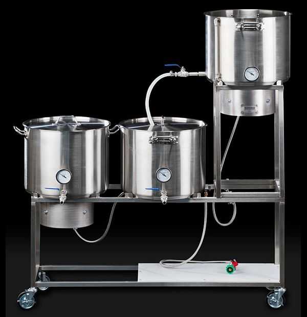 Una cervecería típica 30 a 50 litros en tiendas consistirá de un calentador, un mashtun y una caldera (ver foto 1, fuente). Los tres serán de acero inoxidable y la caldera y mashtun tendrá su propio separado calentador eléctrico o calentador de gas. La ventaja de acero inoxidable multi cañón conjuntos es que duraría para siempre y luego algunos más. Puede utilizar todo tipo de detergentes industriales en acero así como automatizado y resistentes máquinas y robots de limpieza. Por lo general cuestan entre 1500 a 4000 dólares/euros. El problema con estos es que como micro o vinatero no tienes acceso a robots de limpieza o detergentes industriales de todas formas, no tienes espacio para esta gran instalación o dinero para una inversión como esta. Tampoco suelen siempre ser capaz de levantar esto otra vez. Un punto adicional a hacer es que como un cervecero de pequeña escala, simplemente no necesita acero inoxidable. Polypropyleen wil también pasado el equivalente de forever si no preparar más de 100 litros al día.