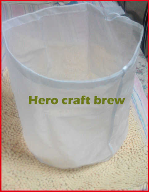 Finalmente es la bolsa de filtro (Foto 9). Para refrescar tu memoria: los granos aplastados conocidos como "Malta"va en el brag brew. La bolsa de filtro se introduce en su fábrica de cerveza cuando la huelga ha alcanzado la temperatura adecuada y se mantiene allí durante aproximadamente una hora (depende de la receta). Luego se llevó a cabo sobre la cervecería a dejar que el líquido restante «sparge"cerebros de la malta remojada. Alternativamente la bolsa se vuelca en el recipiente de la fermentadora durante unos minutos y lo que gotea de ella luego se transfiere a la elaboración de la cerveza tun (nos referiremos a la Cuba de puré caldera como "la cervecería" de ahora en adelante ya que es el mismo buque en nuestro proceso de preparación). La bolsa de café se supone que tiene un montón de granos, creo que 5 a 10 kg. Por lo tanto necesita ser fuerte. Obviamente también debe ser poreus. Por lo tanto recomiendo bolsas de nylon. Estos son fuertes y muy barato, también son súper fáciles de lavar y creo incluso podría lanzar en el lavavajillas (pero no he probado). Asegúrese de obtener una bolsa con un diámetro más grande que el diámetro de su brerery.