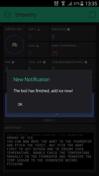 Basado en esta configuración simple que siempre está en tu receta, la cervecería regular las temperaturas de forma completamente automática y decirle exactamente cuándo es hora de intervención humana mediante notificación en la pantalla oled o su smartphone. Precisión es lo que separa un "meh" homebrew de una cerveza gran industrial. Por esta razón la automatización es un gran valor añadido a la elaboración de la cerveza procss.