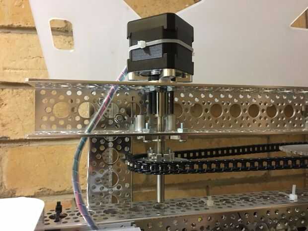 Hay dos aspectos de la alimentación: las cámaras principales de alimentación alimento seco y el motor más pequeño dispensa un trato entre alimentaciones principales. La cámara principal es impulsada por un motor paso a paso y el convite es impulsado por un motor servo.