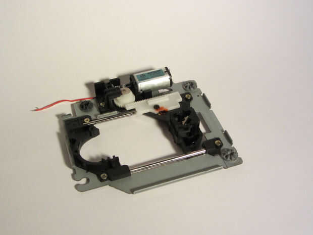1. El funcionamiento interno de una vieja unidad de CD/DVD. Necesita funcionar en un motor de DC! Utilizaremos la unidad lineal como mecanismo de elevación! Generalmente no necesita comprar uno pero mirar alrededor para computadoras viejas que todavía tienen!