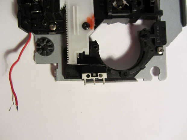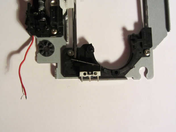 Tome su impulsión linear de la unidad de CD/DVD y pegue el interruptor a posición de fondo de la barra deslizante. Deslizarse en la parte media debe empujar el interruptor pequeño. Este interruptor se conectará en serie con el motor, timerswitch y baterías. Usando los contactos del interruptor dos en el sitio opuesto de la bisagra se desconectará el motor de la batería cuando empujado y así detener el motor extrayendo la bolsita de té. Por supuesto debe asegurarse de que conectar el motor con la polaridad correcta, lo que significa unidades parte media de la unidad de CD/DVD en la dirección de los interruptores de parada.