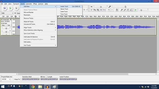 5. crear una nueva pista de audio en blanco: pistas >> Agregar nuevo >> Audio pista