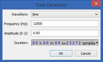 En la ventana que se abre elegir una frecuencia de 12000 Hz y una amplitud de ~ 0. 85 y haga clic en 'OK'