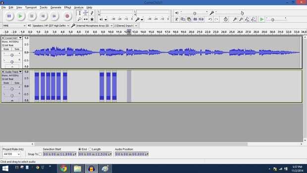 Si su fuente de audio es ruidosa, tiene música de fondo, o no hay codigo postal ruidosamente y pausas claramente definidas, el circuito del miedo Terry pueden fallar sincronizar hasta con el audio correctamente. Si este es el caso puedes fácilmente editar el sonido con el software de audio libre Audacity. Esta idea fue popularizada por cráneos por Essers de Charlie en youtube y este paso se puede resumir en estos dos vídeos por él: