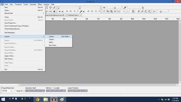 2. importar el archivo de sonido haciendo clic en: archivo >> importación >> Audio